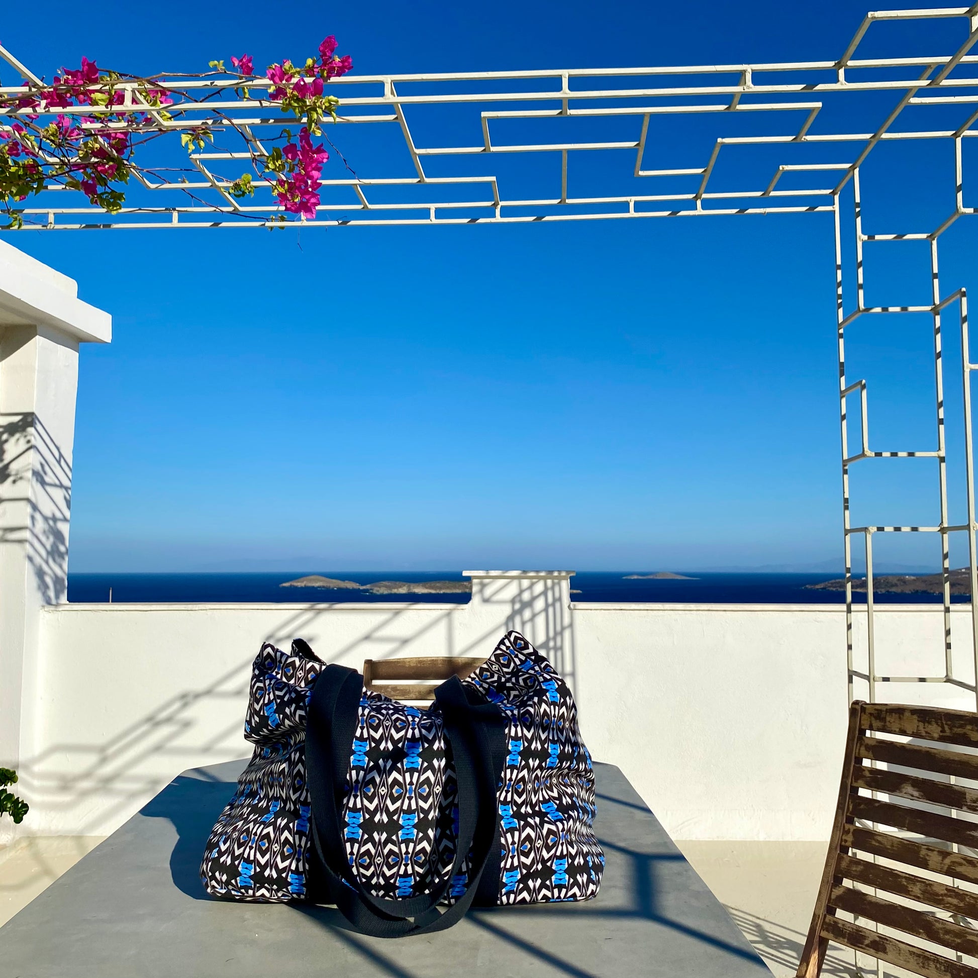 Motif réalisé à partir d'un collage de papiers gouachés découpés sur l'ile de Paros, plage de Molos.